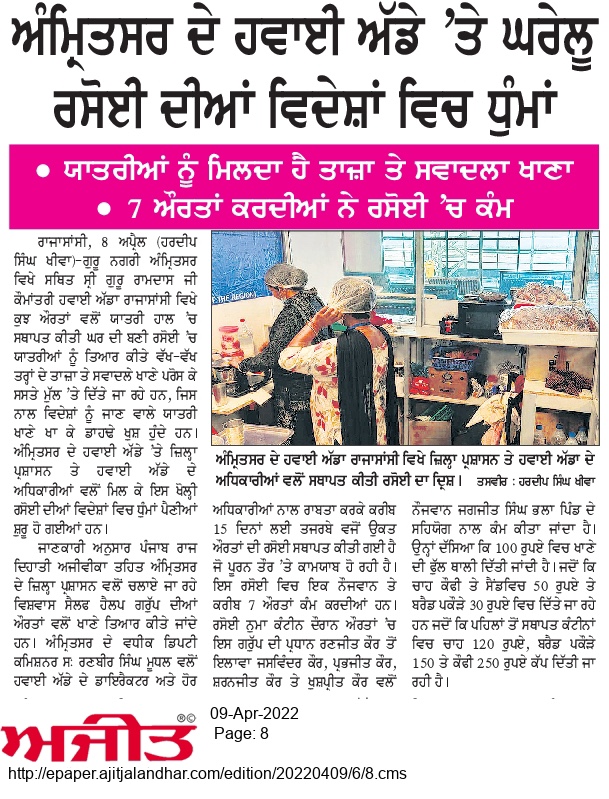 • By admin • Published on April 15, 2022ਯਾਤਰੀਆਂ ਨੂੰ ਮਿਲਦਾ ਹੈ ਤਾਜ਼ਾ ਤੇ ਸਵਾਦਲਾ ਖਾਣਾ; 7 ਔਰਤਾਂ ਕਰਦੀਆਂ ਹਨ ਇਸ ਪੰਜਾਬੀ ਰਸੋਈ ‘ਚ ਕੰਮਸਰੋਤਃ ਅਜੀਤ ਅਖਬਾਰ