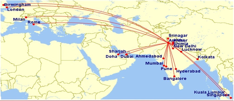 ਅੰਮ੍ਰਿਤਸਰ ਦਾ ਘਰੇਲੂ ਅਤੇ ਵਿਦੇਸ਼ ਦੇ ਹਵਾਈ ਅੱਡਿਆਂ ਨਾਲ ਸਿੱਧਾ ਸੰਪਰਕ