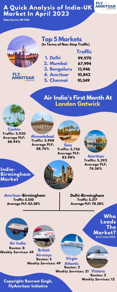 With over 11 non-stop scheduled routes between India & UK in April 2023, about 231,000 passengers travelled non-stop between the two countries during the month.