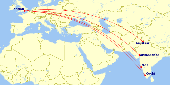 The airline enjoys full-monopoly on 6 of these routes, including 4 to London Gatwick from Amritsar, Ahmedabad, Goa & Cochin and 2 to Birmingham from Amritsar & Delhi.