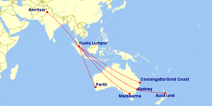 The airline first commenced operations from Amritsar in the year 2018, operating upto 5x weekly non-stop A330-300 services to Kuala Lumpur untill March 2020.
