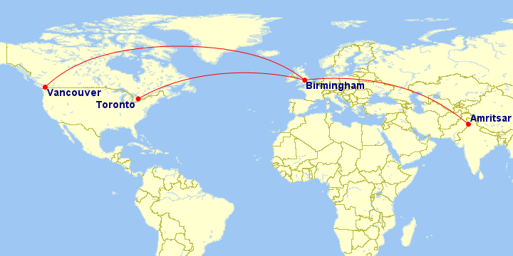 After over 2 decades, in 2005, Air India, relaunched this route, non-stop with it’s newly inducted B777 aircraft. It also connected Amritsar to Toronto via Birmingham. This route was feted as one of the most profitable routes for the airline in its history.