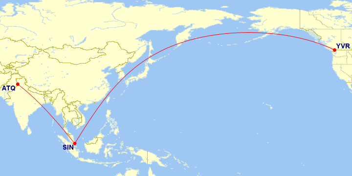 At present, the inbound Scoot flight from Amritsar leaves at 7:40 pm arriving in Singapore at 4:05am local time. With a short layover of around 2 hours 55 minutes, passengers can than connect through to Singapore Airlines flight departing at 7:00am and arriving in Vancouver at 6:45am, total trip duration of 23 hrs. 35 mins. Currently, the outbound flight from Vancouver arrives in Singapore shortly after the Scoot flights leaves for Amritsar. As a result, passengers have a long layover in Singapore for about 23hrs, thus making the journey bit long and tedious. Due to these reasons passenger may choose in either flying to or via Delhi and thus airline tends to lose this huge traffic.
