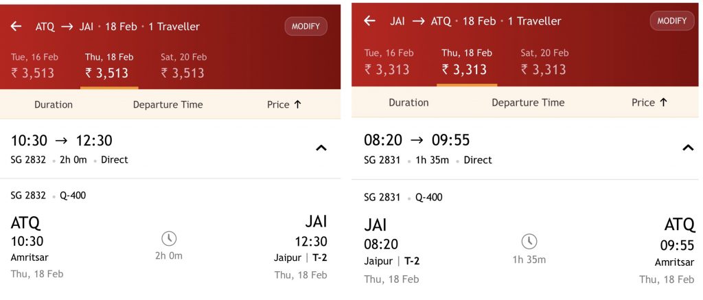 ਅੰਮ੍ਰਿਤਸਰ ਤੋਂ ਉਡਾਣ ਸਵੇਰੇ 10:30 ਵਜੇ ਰਵਾਨਾ ਹੋਵੇਗੀ ਅਤੇ ਦੁਪਹਿਰ 12:30 ਵਜੇ ਜੈਪੁਰ ਪਹੁੰਚੇਗੀ, ਜਦੋਂ ਕਿ ਜੈਪੁਰ ਤੋਂ ਉਡਾਣ ਸਵੇਰੇ 8:20 ਵਜੇ ਰਵਾਨਾ ਹੋਵੇਗੀ ਅਤੇ ਸਵੇਰੇ 9:55 ਵਜੇ ਅੰਮ੍ਰਿਤਸਰ ਪਹੁੰਚੇਗੀ।